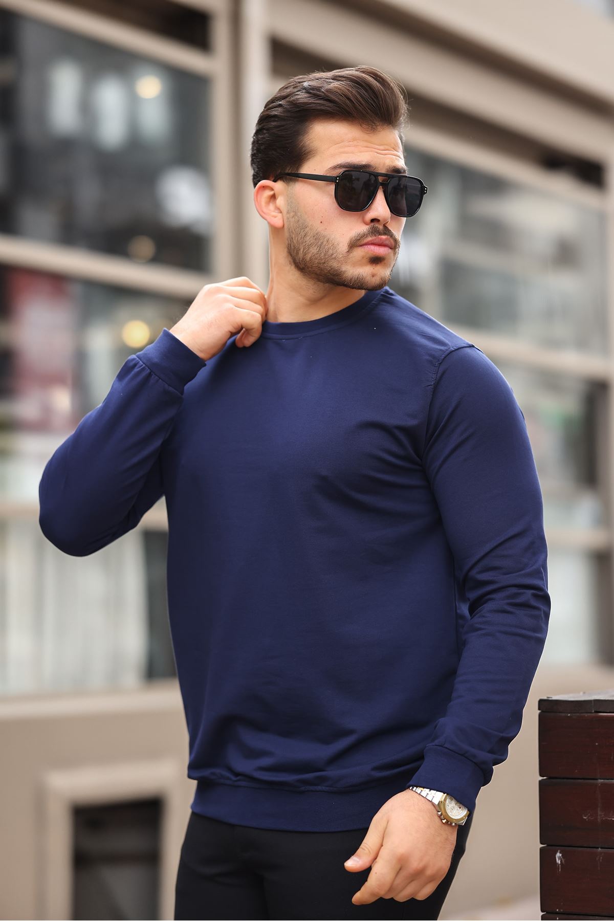 Erkek Kompakt Pamuklu Slim Fit Sweatshirt LACİVERT