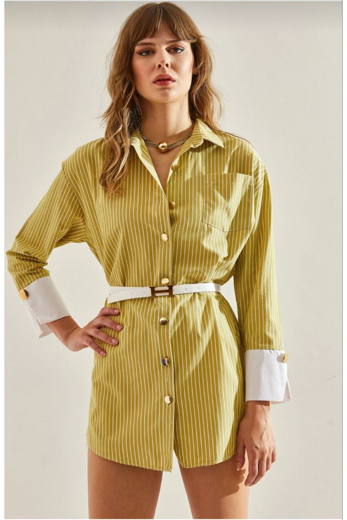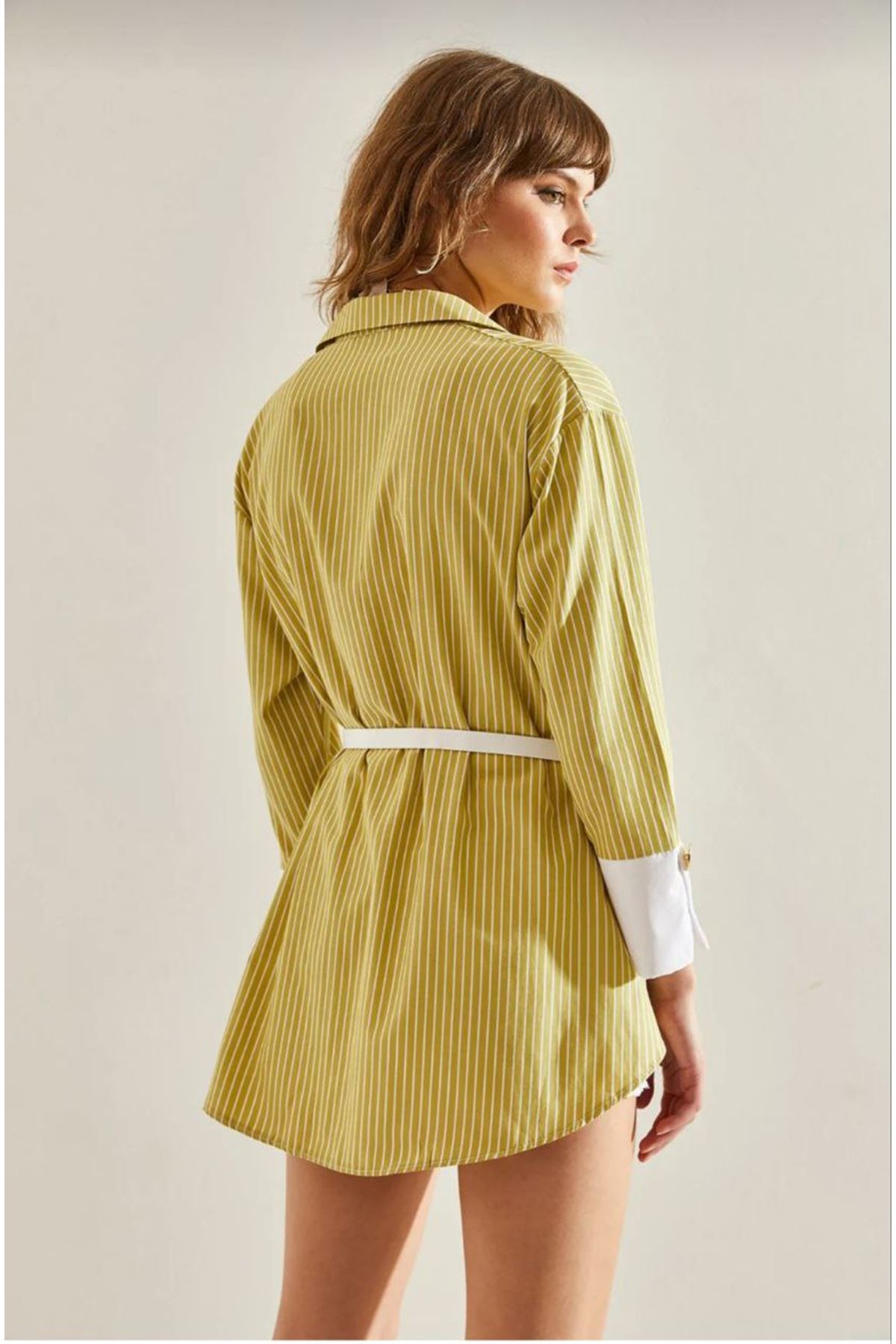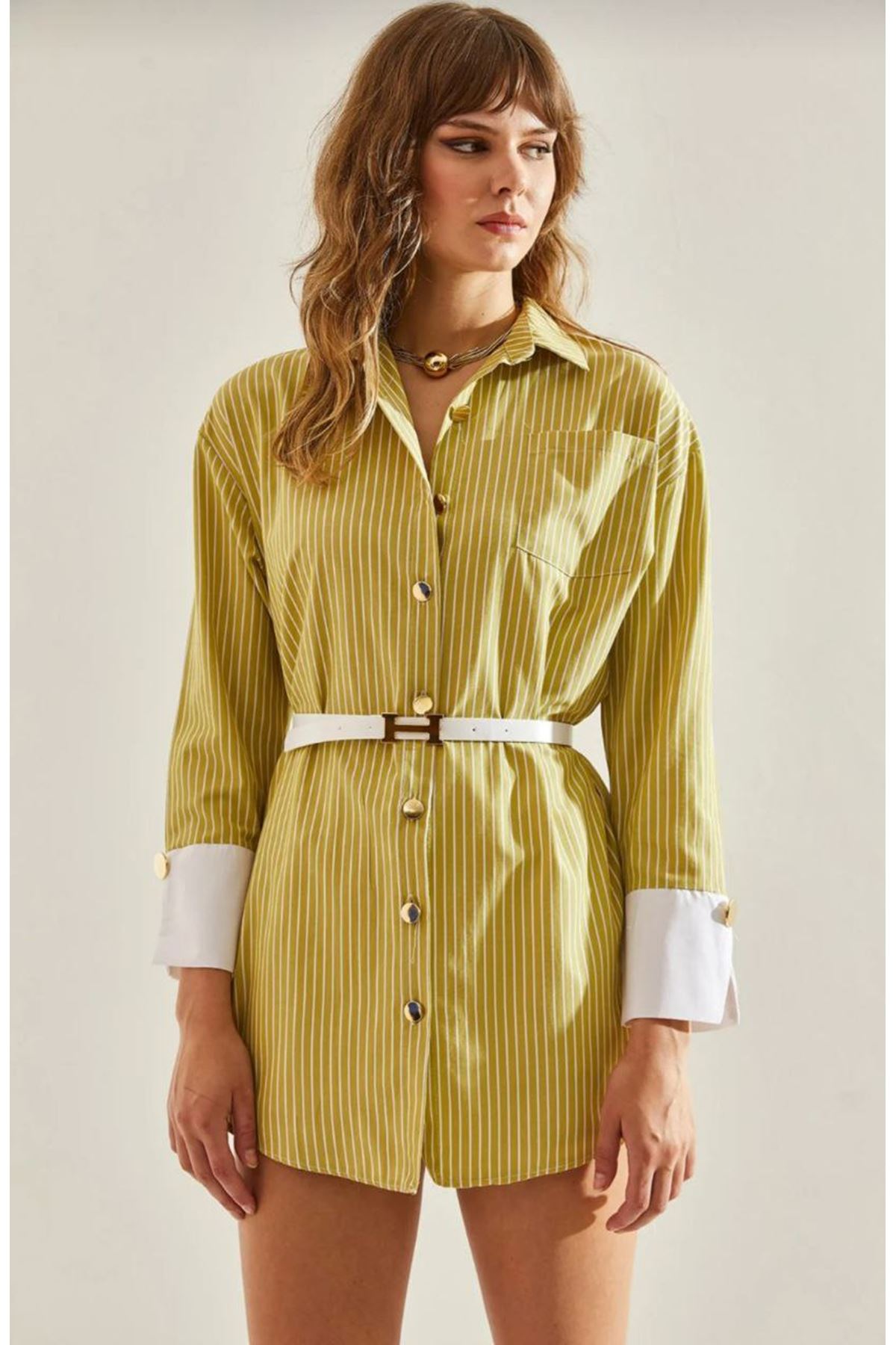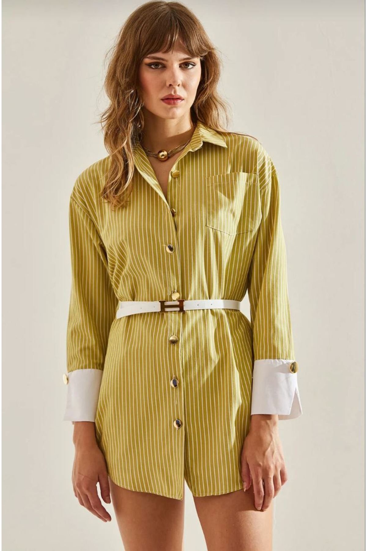 Kadın Oversize Uzun Basic Gömlek YEŞİL