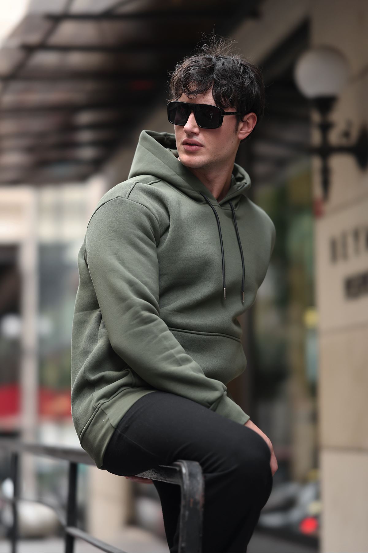 Üç İplik Şardonlu Kanguru Cep Sweatshirt HAKİ