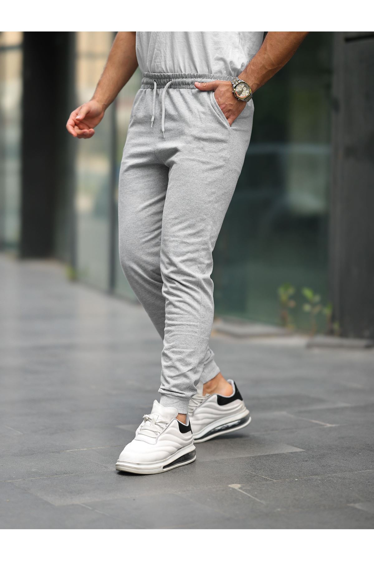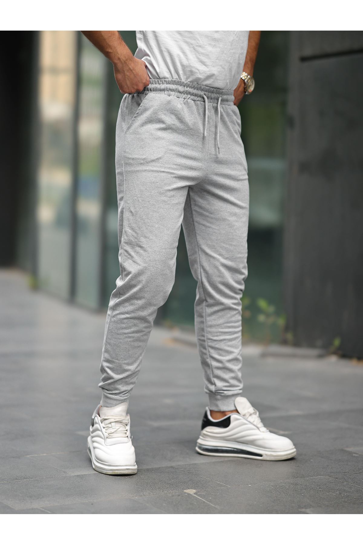Unisex Antrasit Paça Lastikli Eşofman GRİ