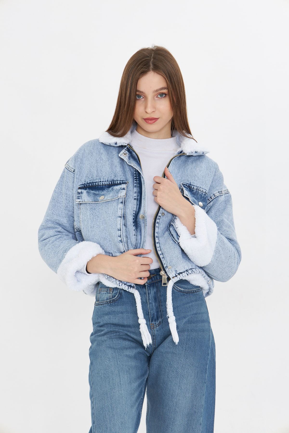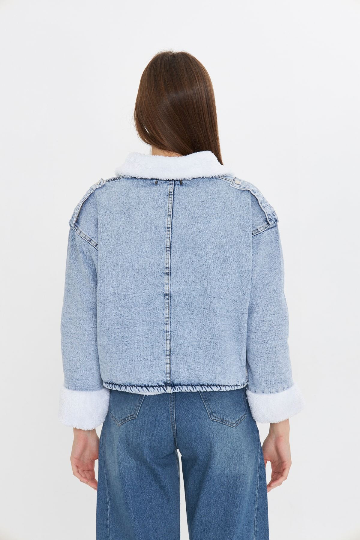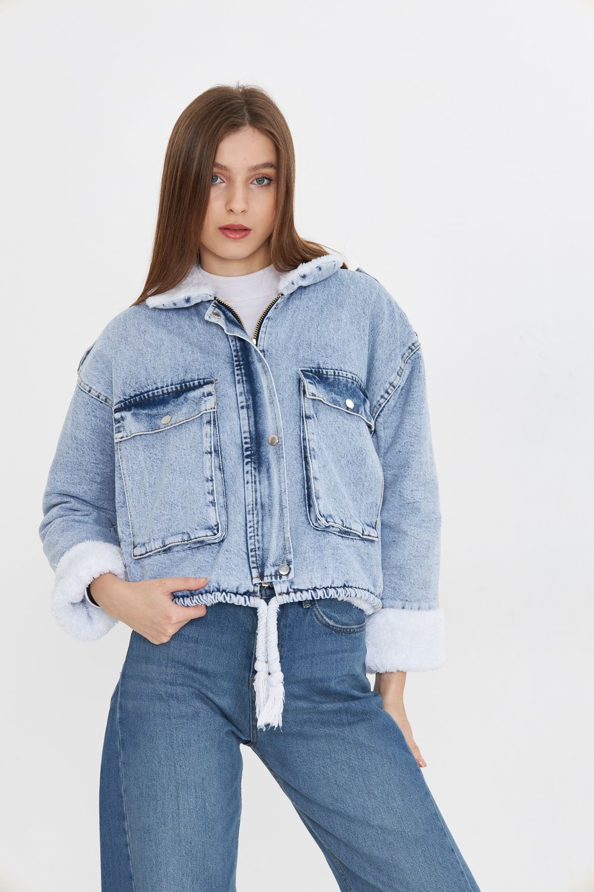 Yakası Kolları Ve Içi Yumuşak Peluş Kürklü Kot Mont BUZ MAVİ