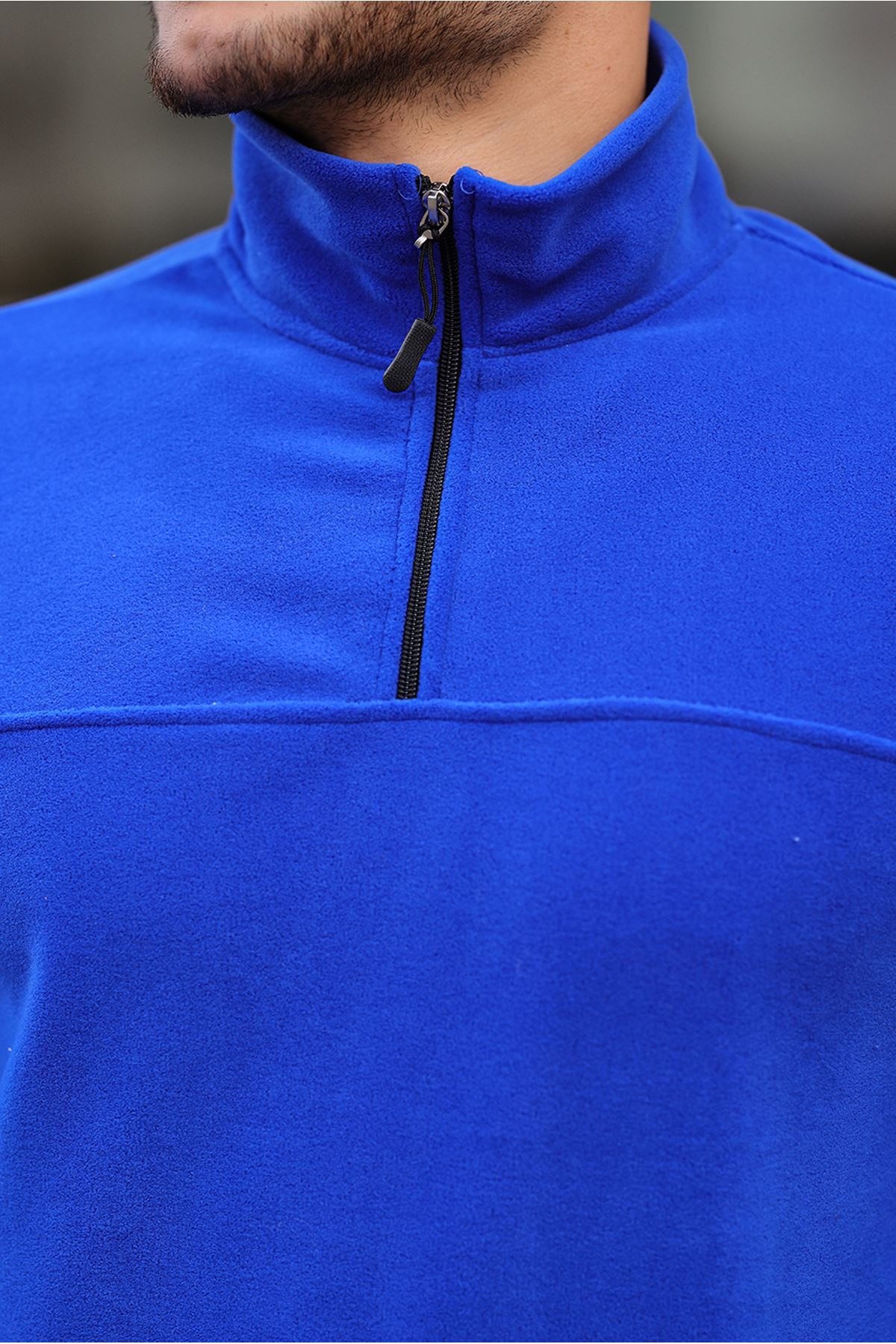 Yarım Fermuarlı Polar Sweatshirt SAKS MAVİ